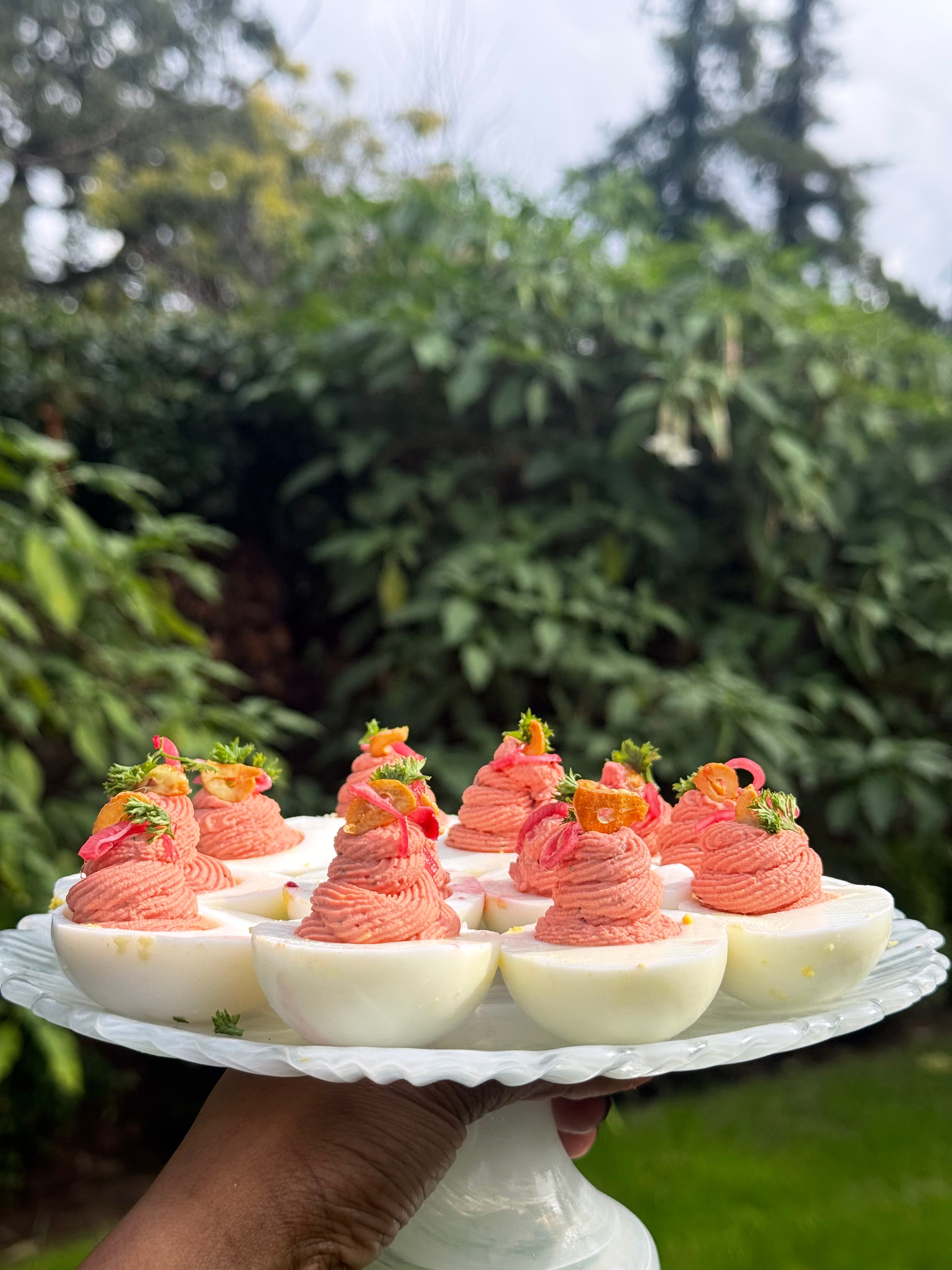 Girls don’t just want flowers for Valentine’s Day, they want lemon pepper deviled eggs with sweet pickled shallots and fried garlic. I’m always happy to bring a recipe to the newsletter that my friends loved, and this is just that. Tangy, crunchy, with just a hint of sweetness. It’s the perfect Galentine’s Day recipe, and all the tasty details are below.